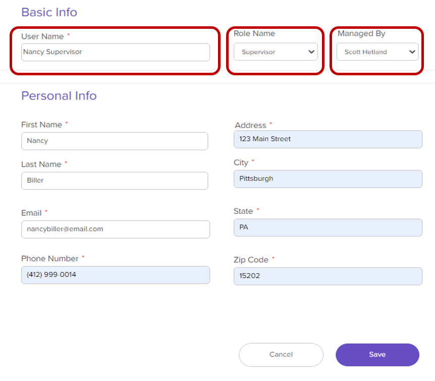 The Role should be Clinician and the Managed by should be the Supervisor’s Name.